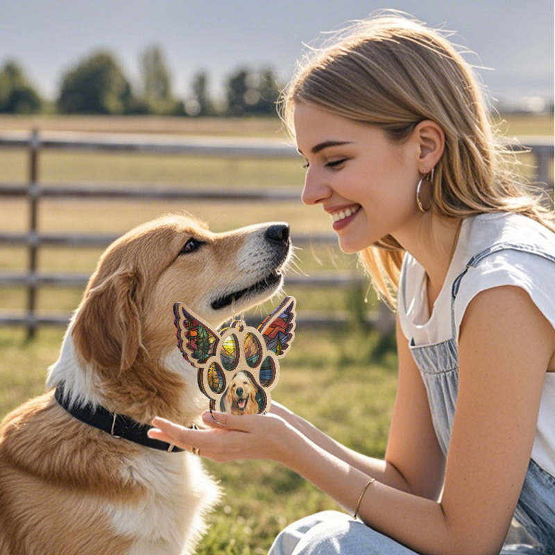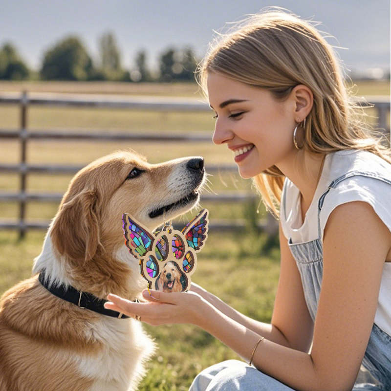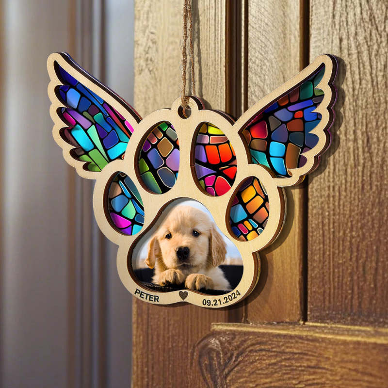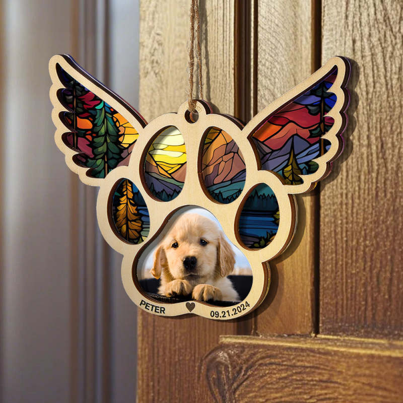 Celebrate the memory of your furry friend with our personalized pet suncatcher ornament. This special ornament features your pet's name and photo, making it a beautiful memorial gift for pet lovers. Each one is custom-made and captures the unique bond between you and your beloved pet.